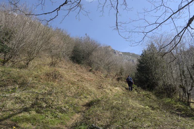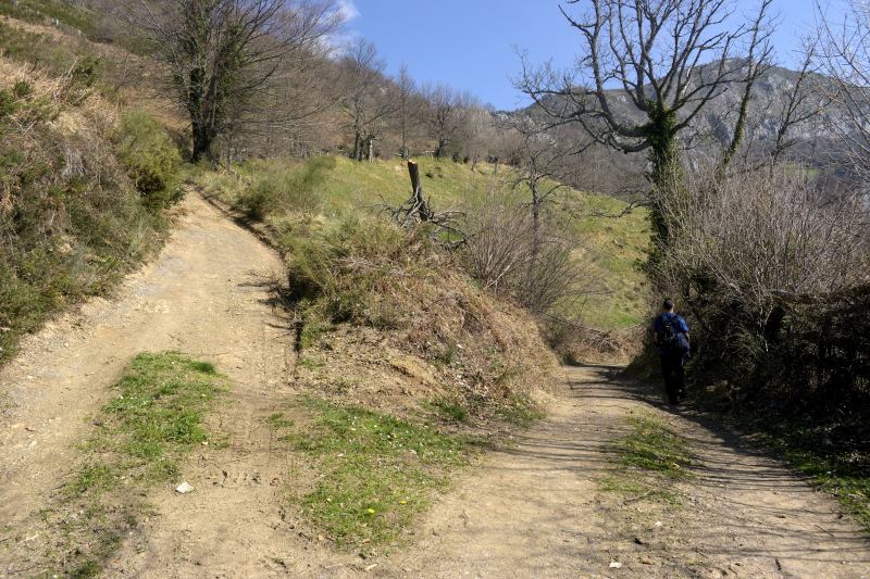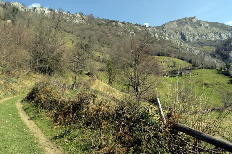 Después de dejar La Fuente las cuestas vuelven a aparecer, caminamos entre praderías y pequeñas zonas boscosas.