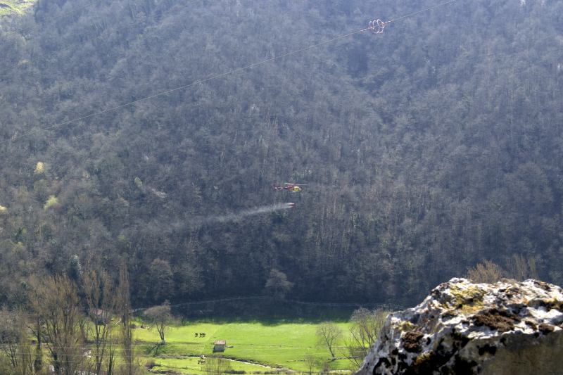 Desde ese mirador contemplamos a un helicóptero recargando agua para apagar un incendio cercano.