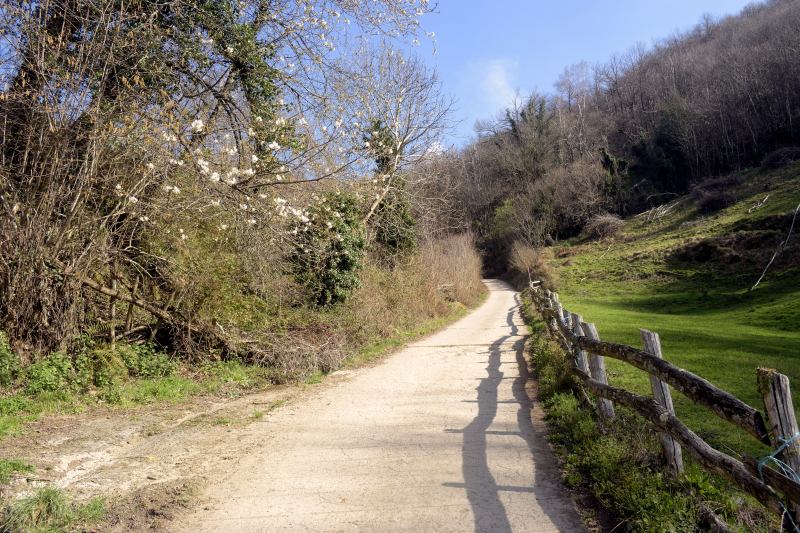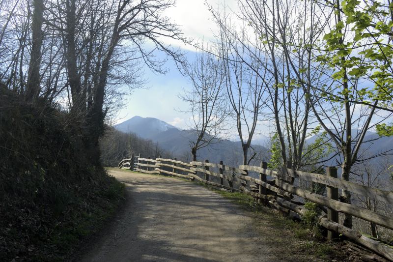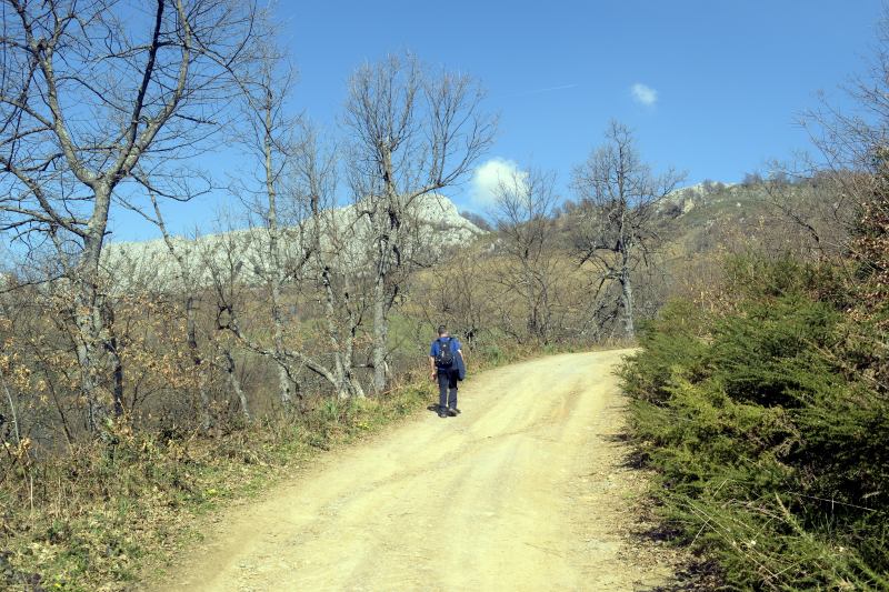 Caminamos por caleyas asfaltadas que discurren entre casas, con pendientes pronunciadas.